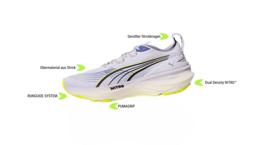 Puma a-t-il éveillé ton intérêt avec cette combinaison réussie de confort et de stabilité ? Tu trouveras bien sûr la nouvelle ForeverRun NITRO 2 pour femmes et hommes, dans toutes les tailles et couleurs courantes, également chez Running Point